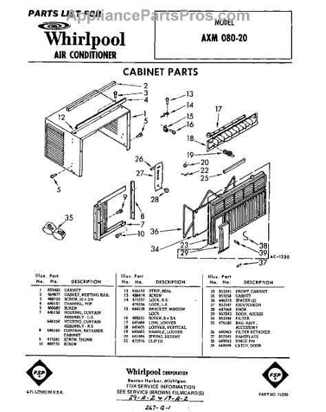 Parts for Whirlpool AXM08020: 01 - Section Parts