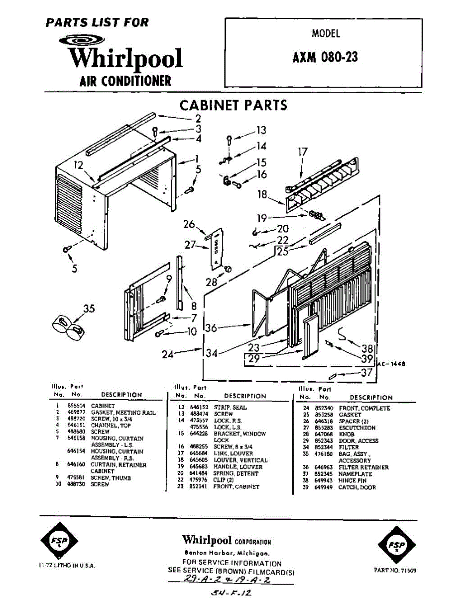 Parts for Whirlpool AXM08023: 01 - Section Parts