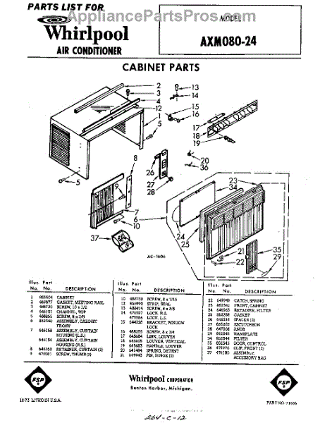 Parts for Whirlpool AXM08024: 01 - Section Parts