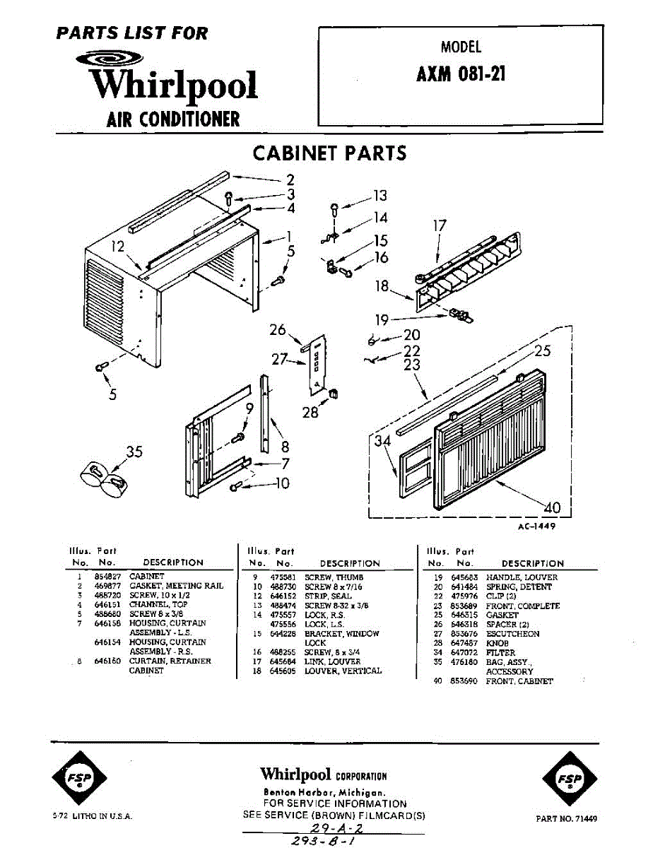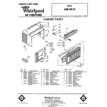 Parts for Whirlpool AXM08121: 01 - Section Parts
