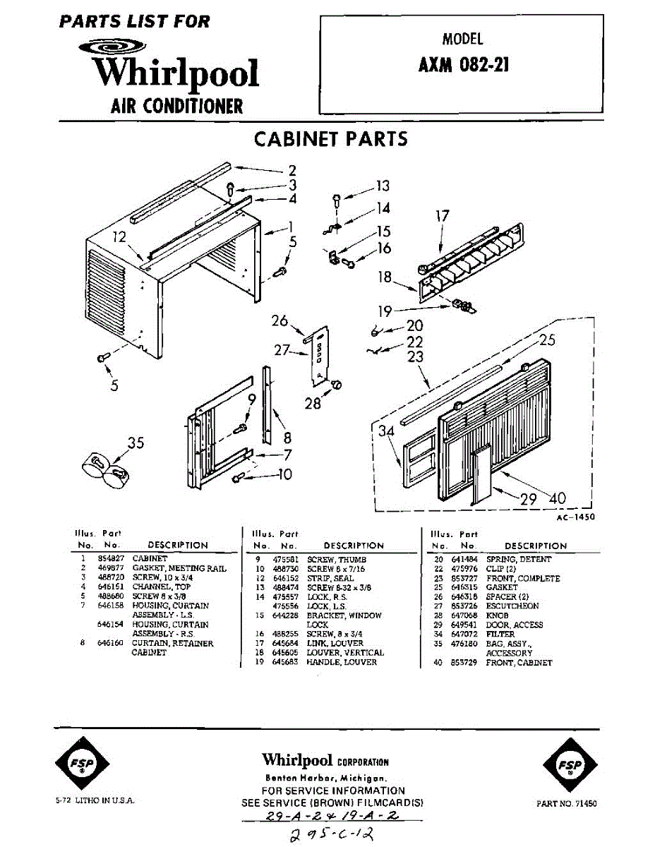 Parts for Whirlpool AXM08221: 01 - Section Parts