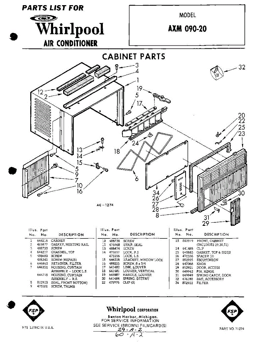 Parts for Whirlpool AXM09020: 01 - Section Parts