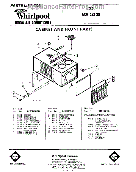 Parts for Whirlpool AXMC6320: 01 - Section Parts