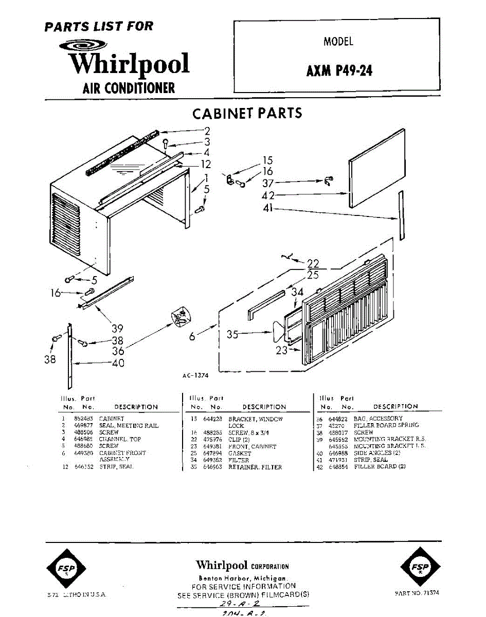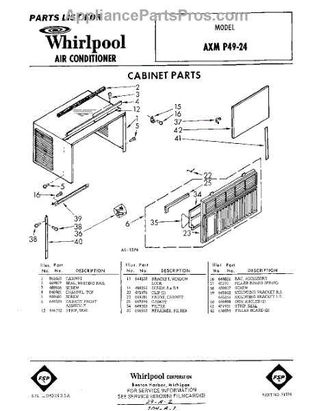 Parts for Whirlpool AXMP4924: 01 - Section Parts