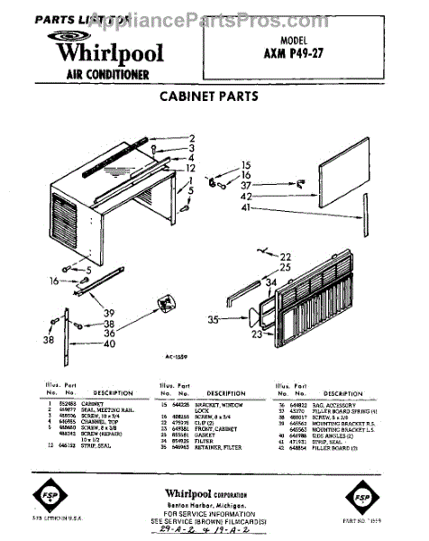 Parts for Whirlpool AXMP4927: 01 - Section Parts