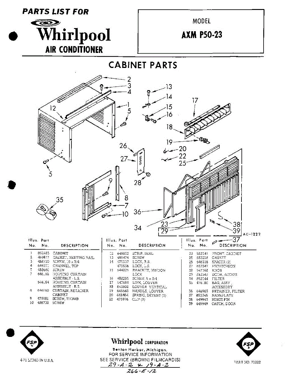 Parts for Whirlpool AXMP5023: 01 - Section Parts