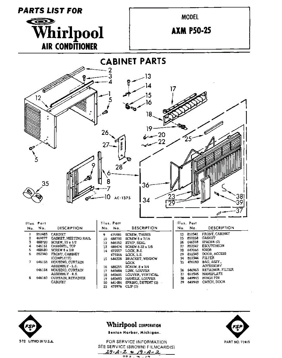 Parts for Whirlpool AXMP5025: 01 - Section Parts