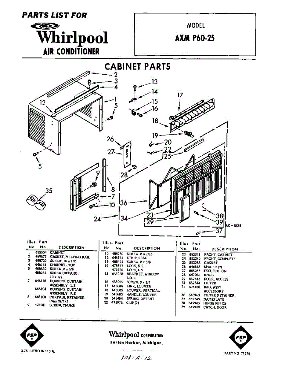 Parts for Whirlpool AXMP6025: 01 - Section Parts
