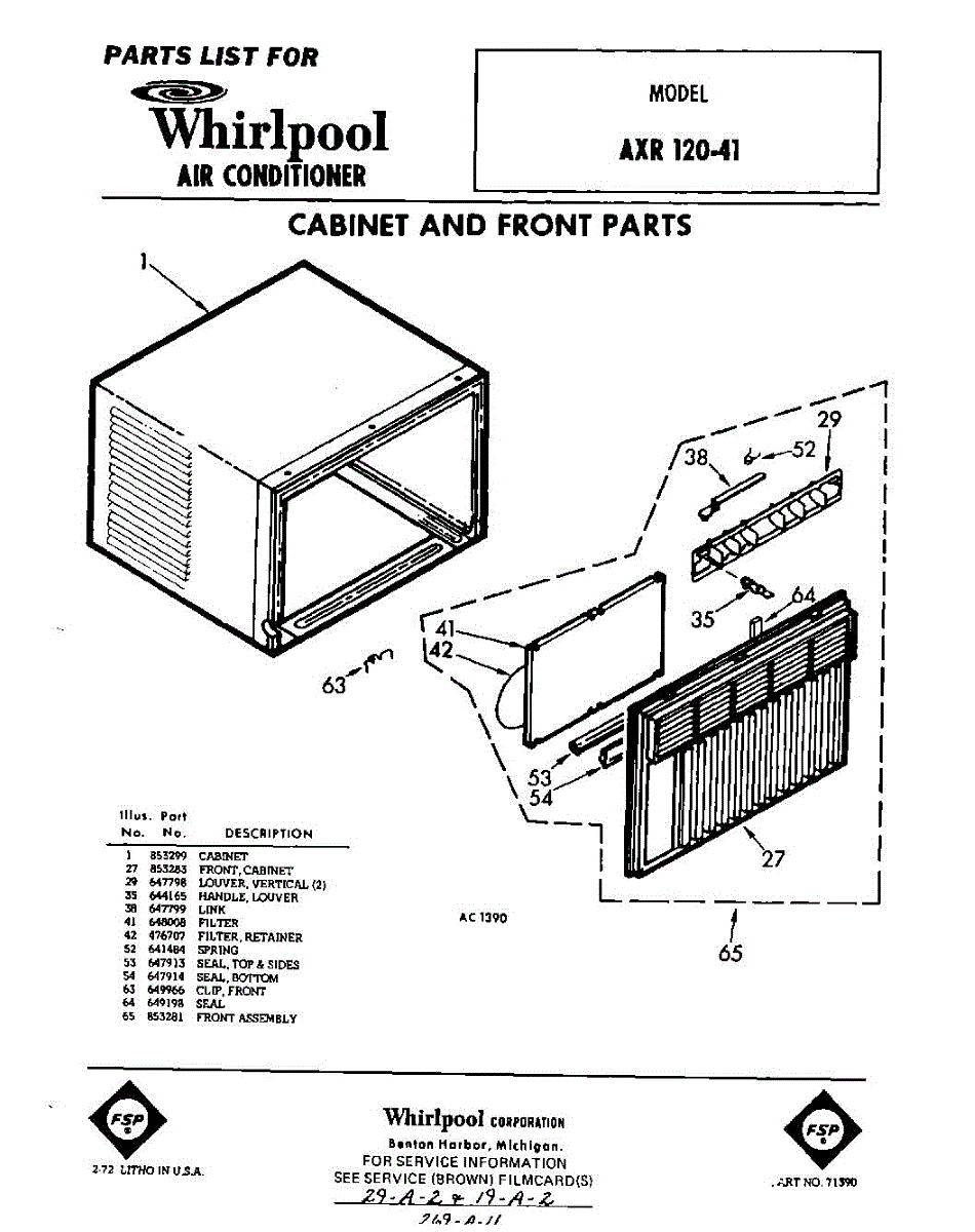 Parts for Whirlpool AXR12041: 01 - Section Parts