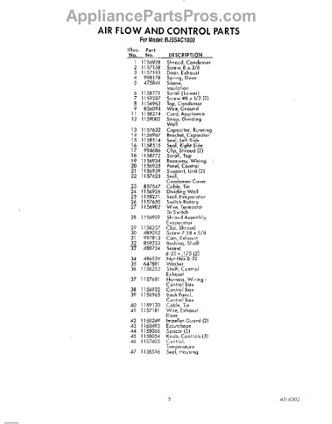 Parts for Whirlpool BJSSAC1000: 05 - Section Parts