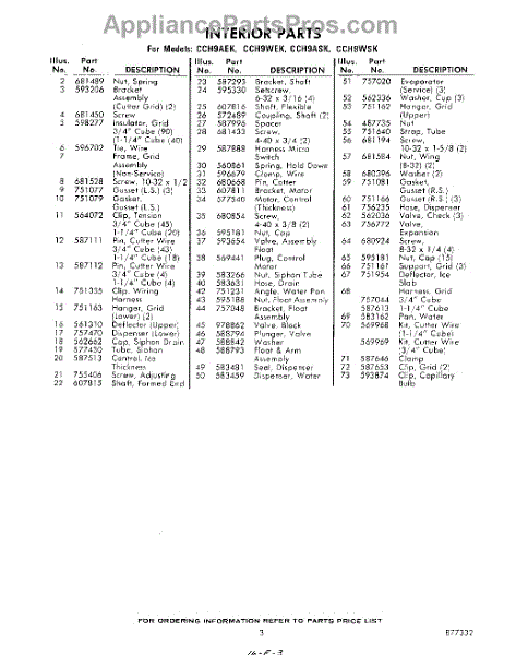 Parts for CCH9WEK