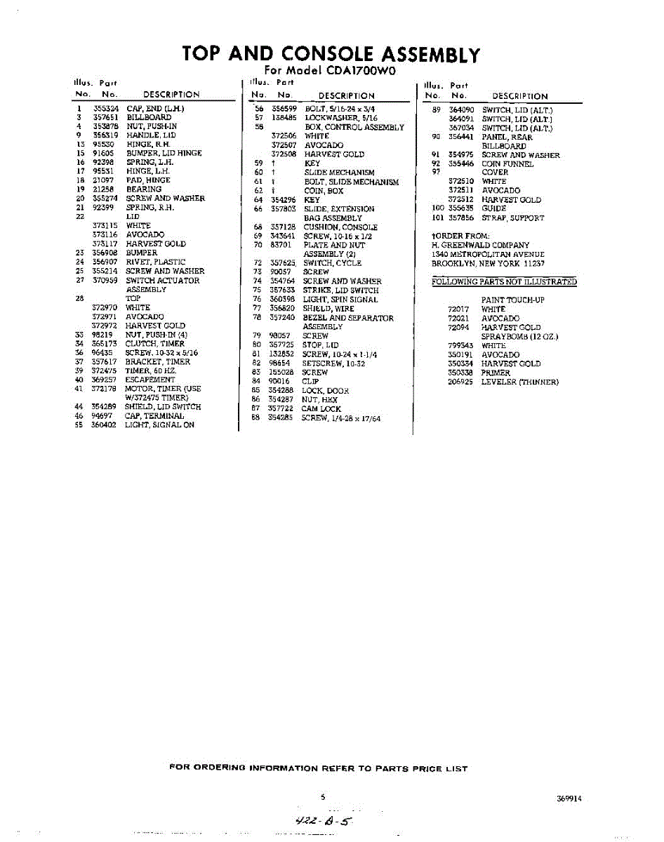 Parts for Whirlpool CDA1700W0: 05 - Section Parts
