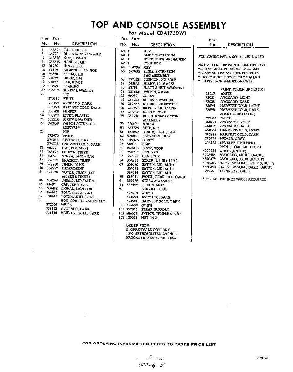 Parts for Whirlpool CDA1750W1: 05 - Section Parts