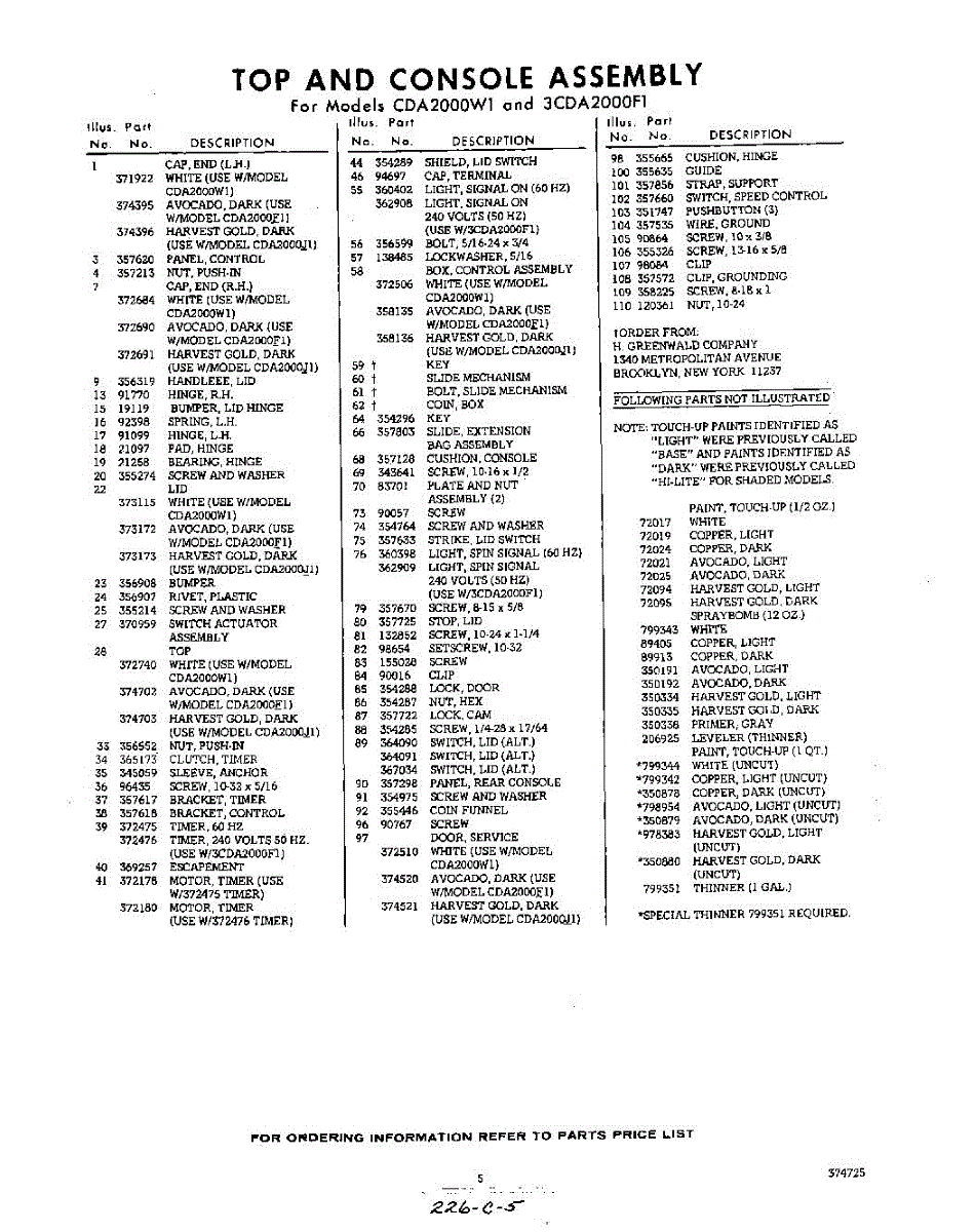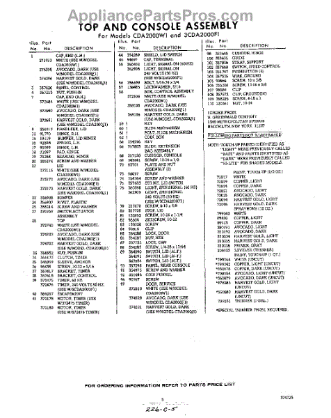 Parts for Whirlpool CDA2000W1: 05 - Section Parts
