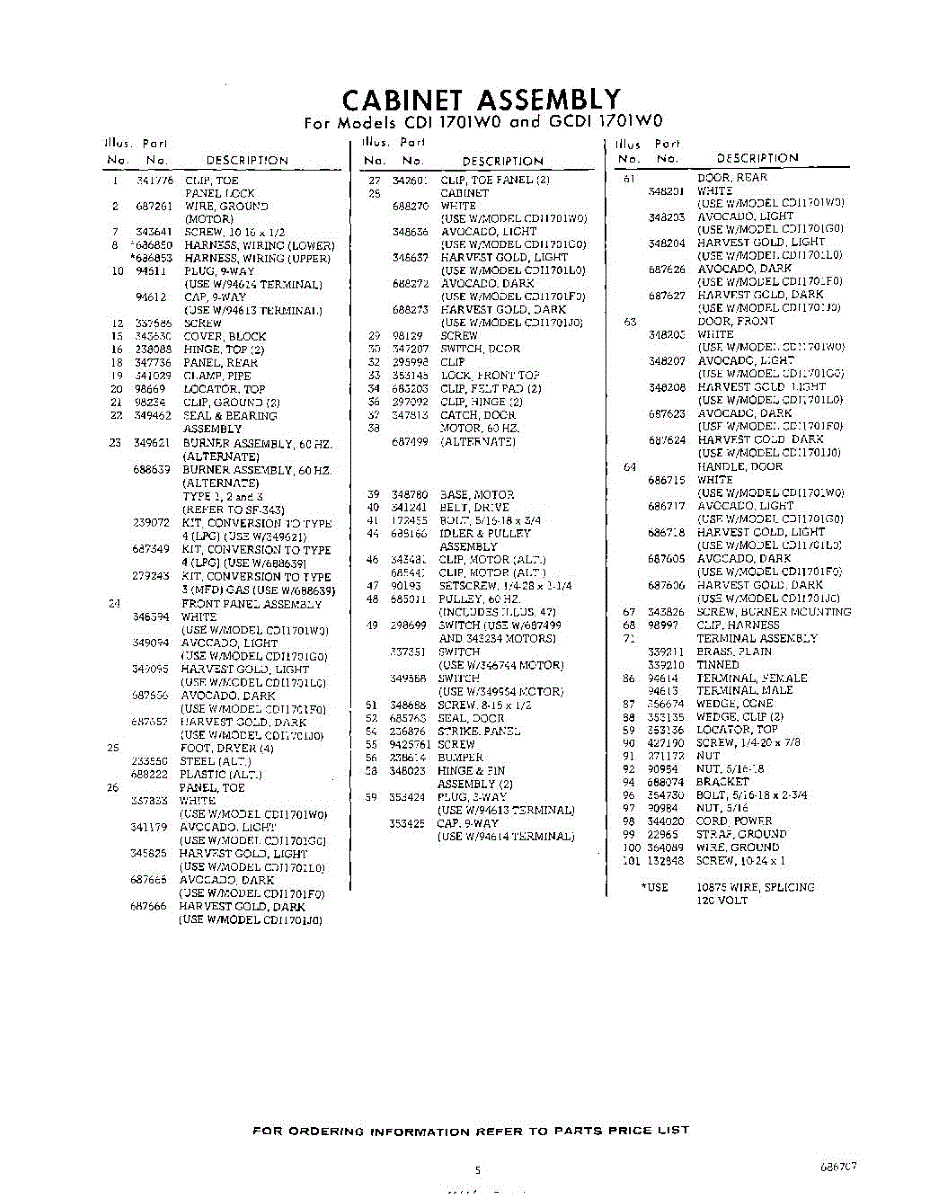 Parts for Whirlpool CDI1701W0: 05 - Section Parts