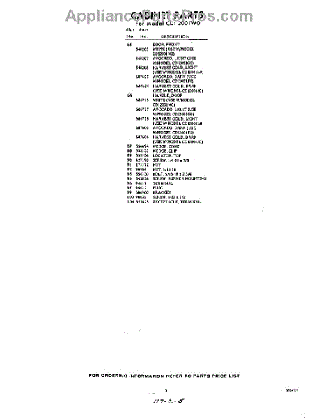 Parts for Whirlpool CDI2001W0: 05 - Section Parts