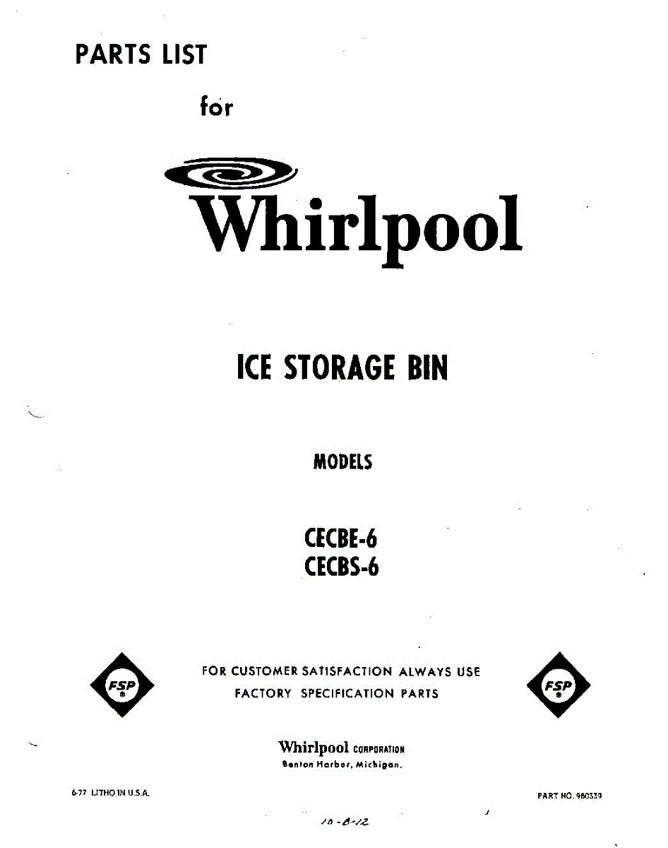Parts for Whirlpool CECBE6: 01 - Section Parts