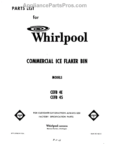 Parts for Whirlpool CEFB4S: 01 - Section Parts