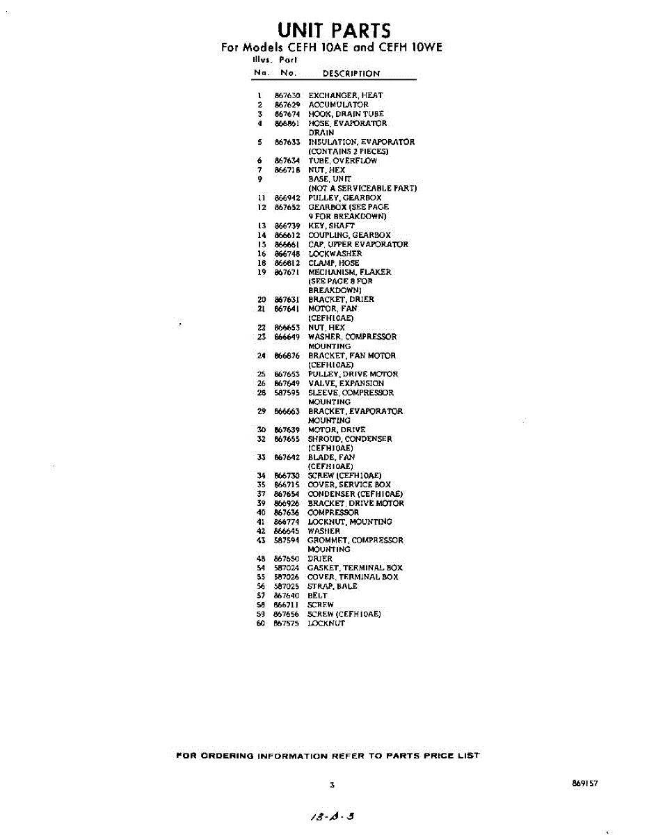 Parts for CEFH10WE