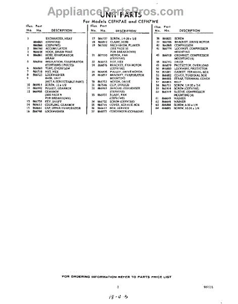Parts for CEFH7AE