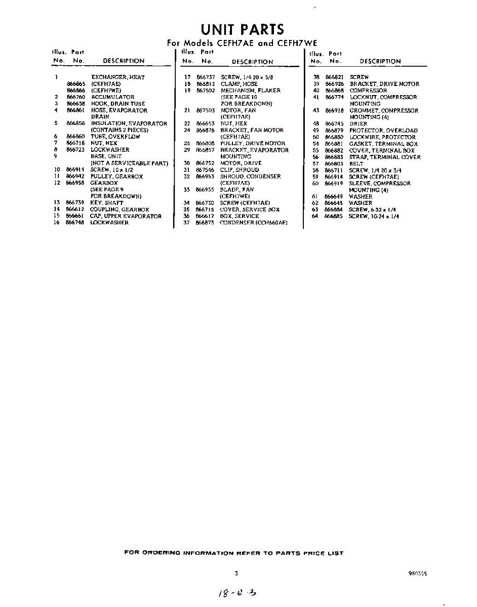 Parts for CEFH7WE