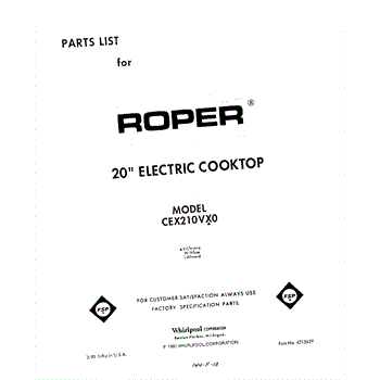 Parts for Whirlpool CEX210VW0: 01 - Section Parts