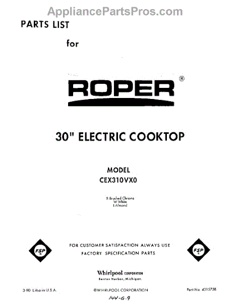 Whirlpool Cooktop Parts