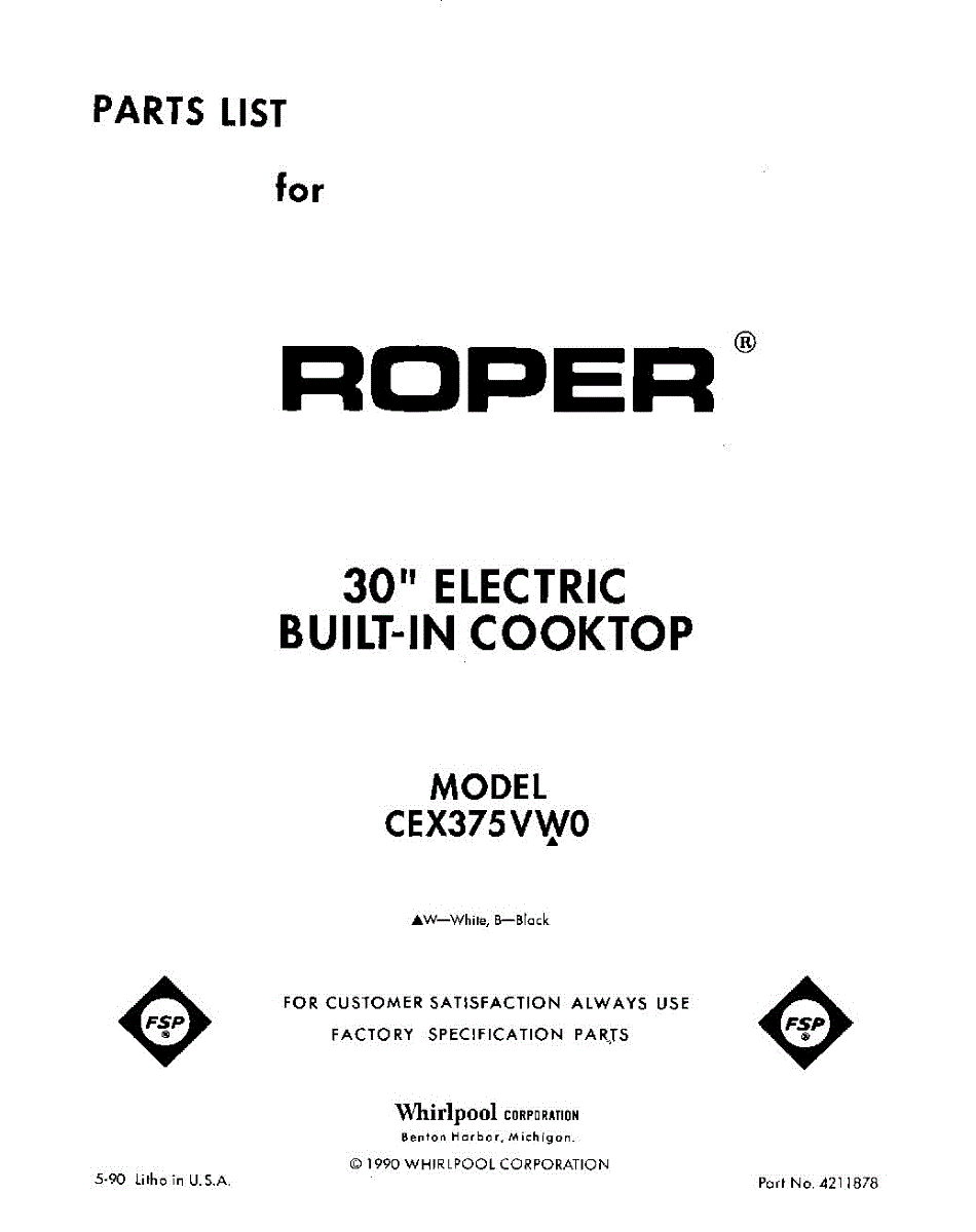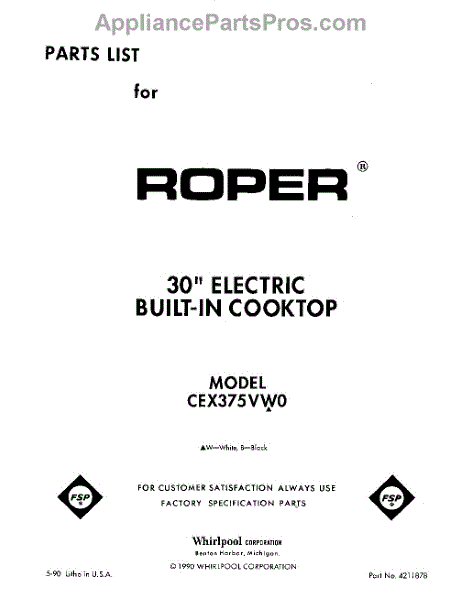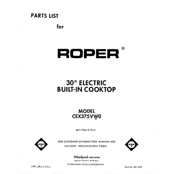 Whirlpool Cooktop Parts