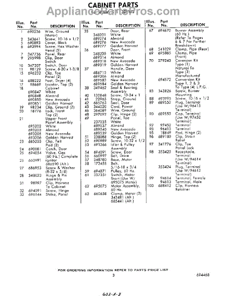 Parts for Whirlpool CF1301W3: 03 - Section Parts