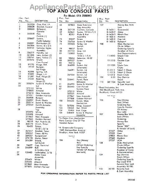 Parts for Whirlpool CFA2500W3: 03 - Section Parts