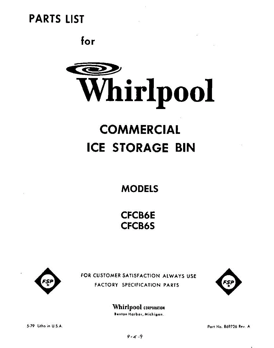 Parts for Whirlpool CFCB6E: 01 - Section Parts