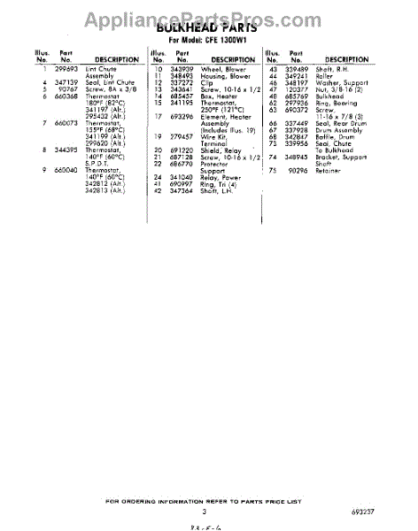 Parts for Whirlpool CFE1300W1: 03 - Section Parts