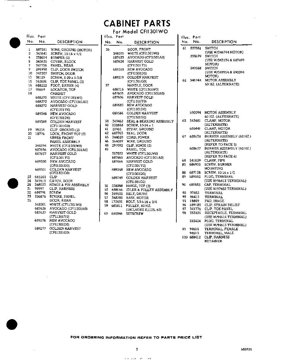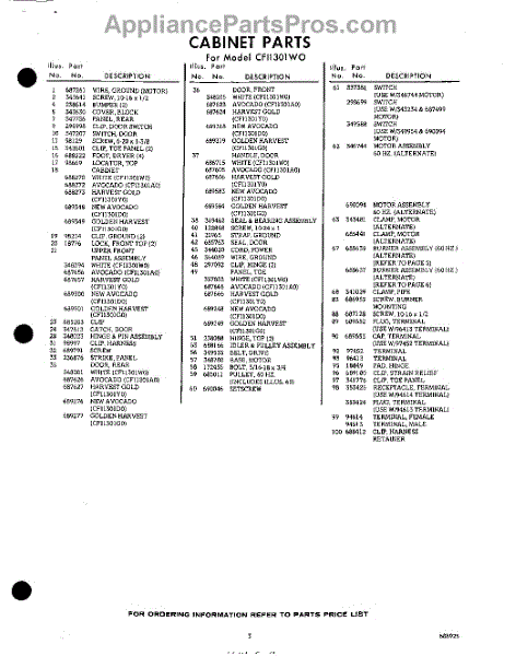 Parts for Whirlpool CFI1301W0: 03 - Section Parts