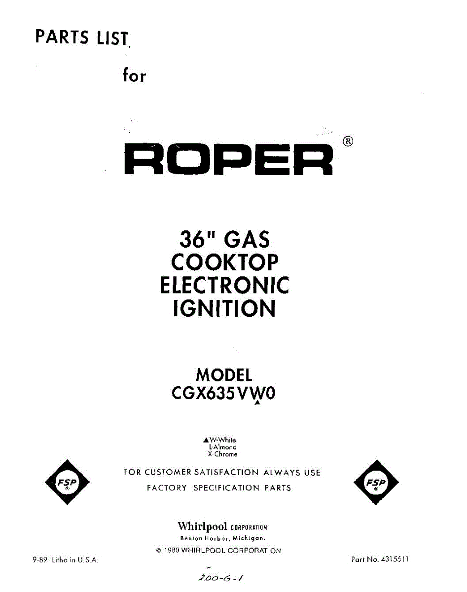 Parts for Whirlpool CGX635VL0: 01 - Section Parts