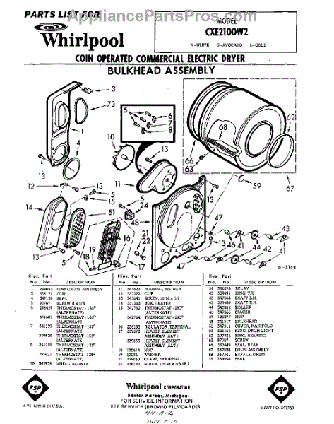 Parts for Whirlpool CTE2100W2: 01 - Section Parts