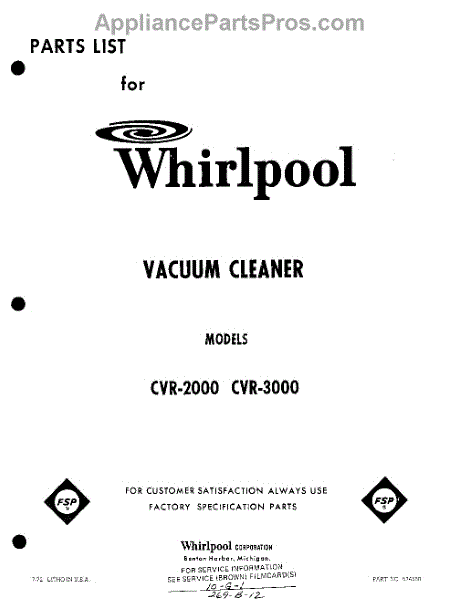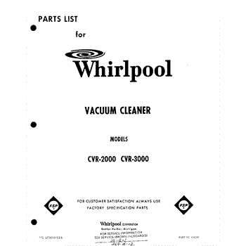 Parts for Whirlpool CVR3000: 01 - Section Parts