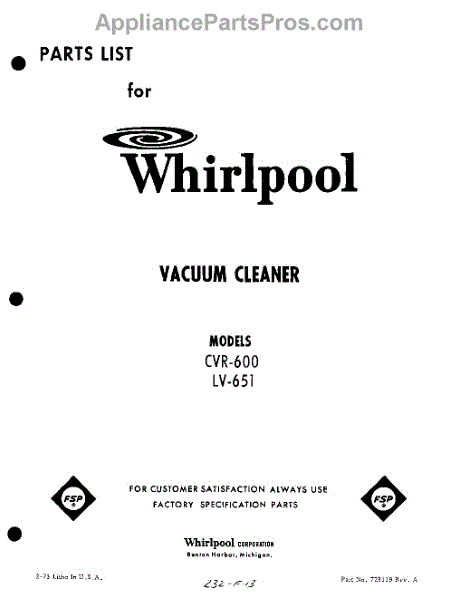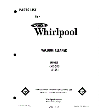 Parts for Whirlpool CVR600: 01 - Section Parts