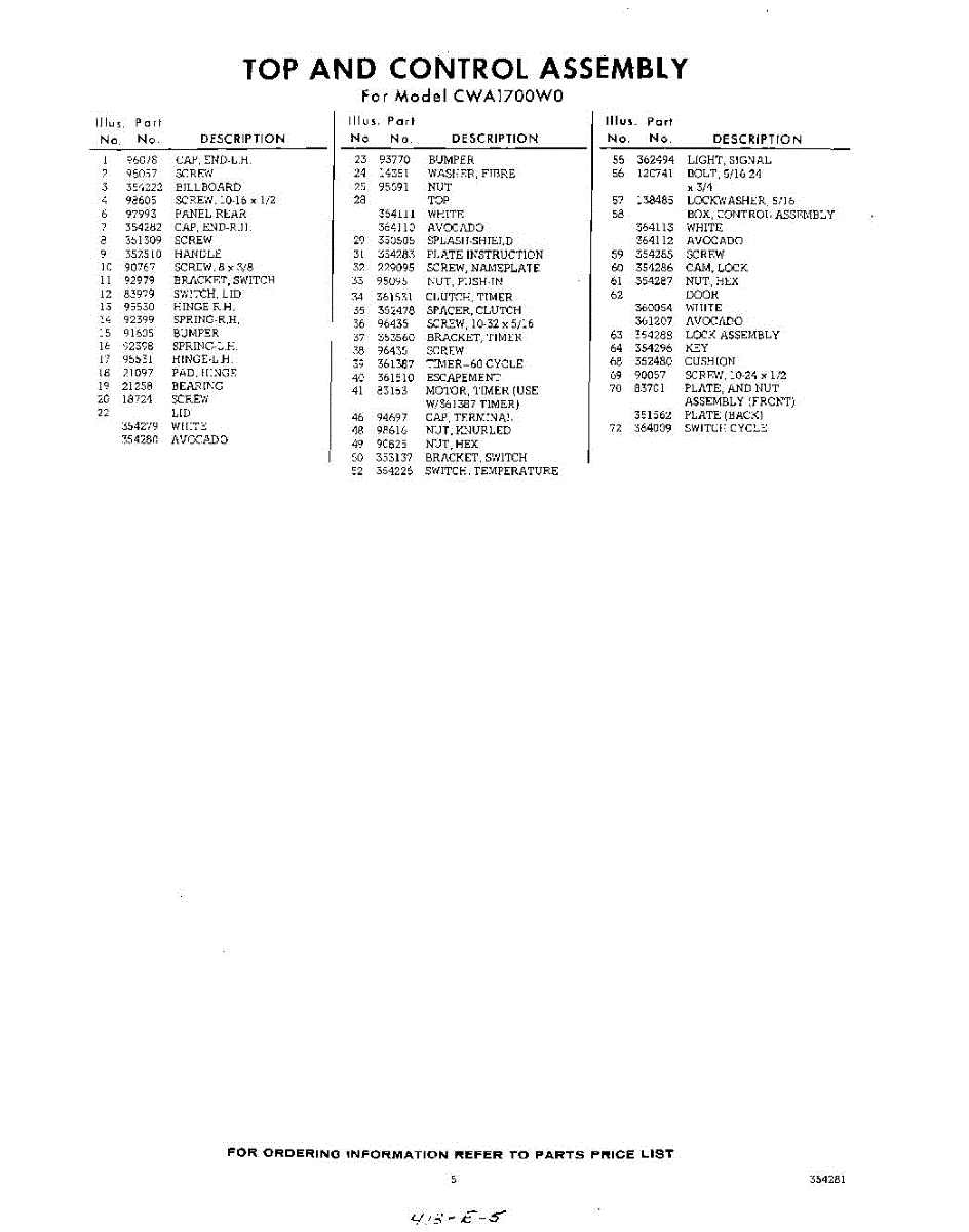 Parts for Whirlpool CWA1700W0: 05 - Section Parts