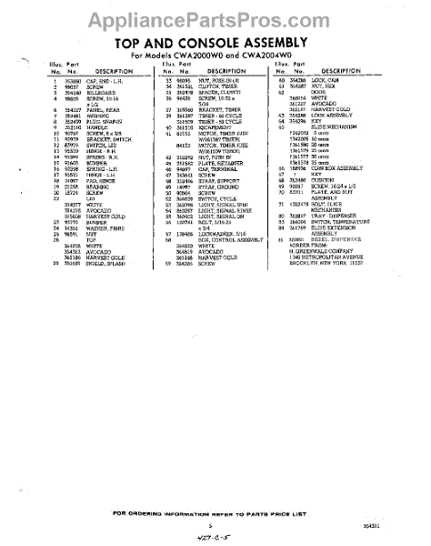 Parts for Whirlpool CWA2000W0: 05 - Section Parts