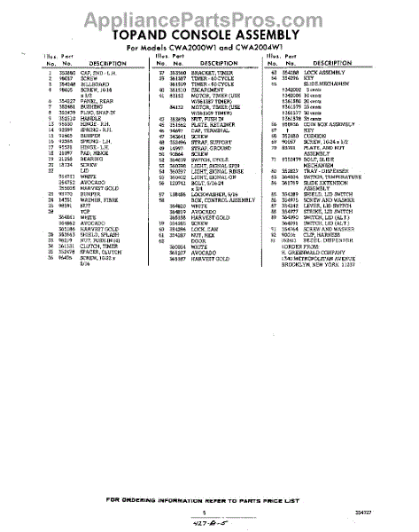 Parts for Whirlpool CWA2000W1: 05 - Section Parts
