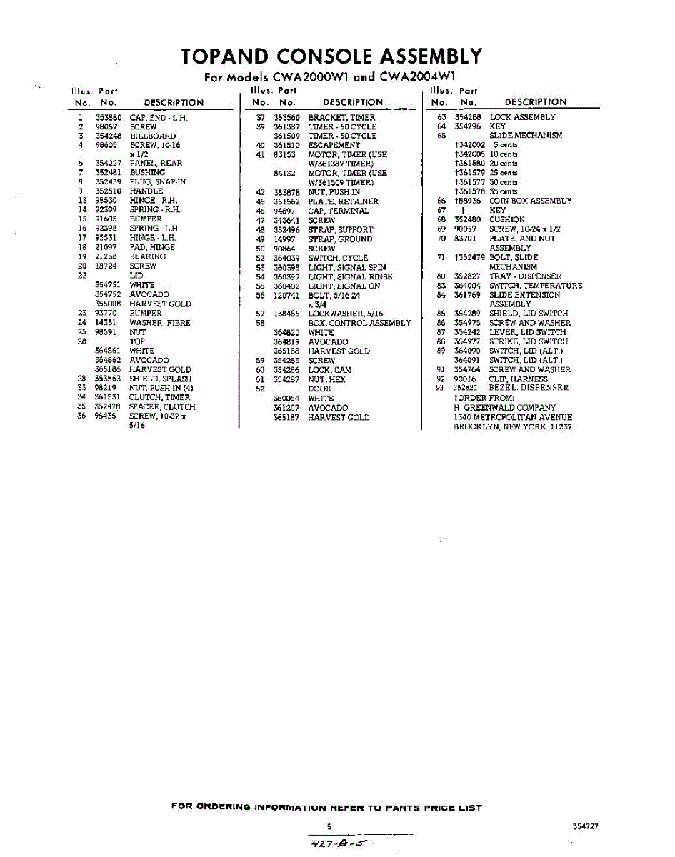 Parts for Whirlpool CWA2004W1: 05 - Section Parts