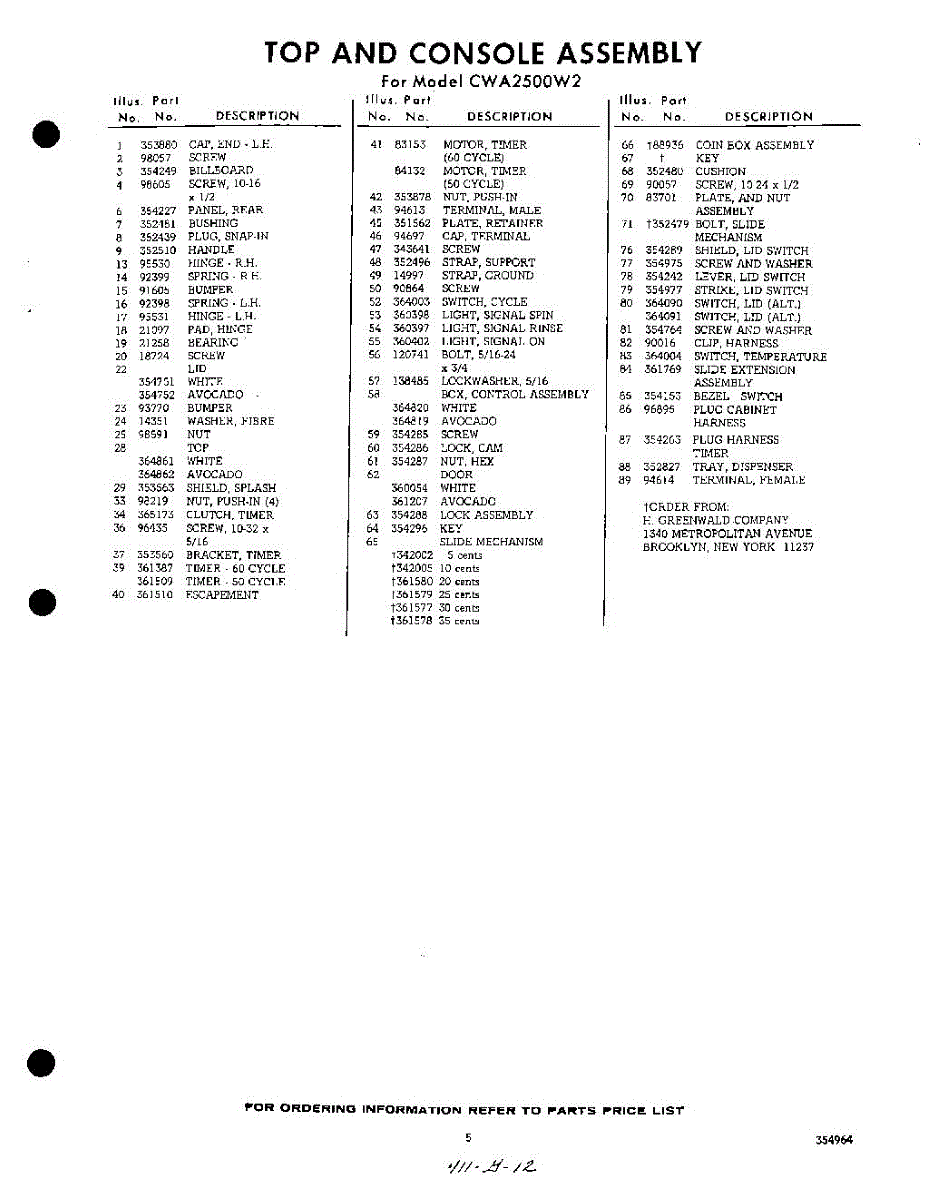 Parts for Whirlpool CWA2500W2: 05 - Section Parts