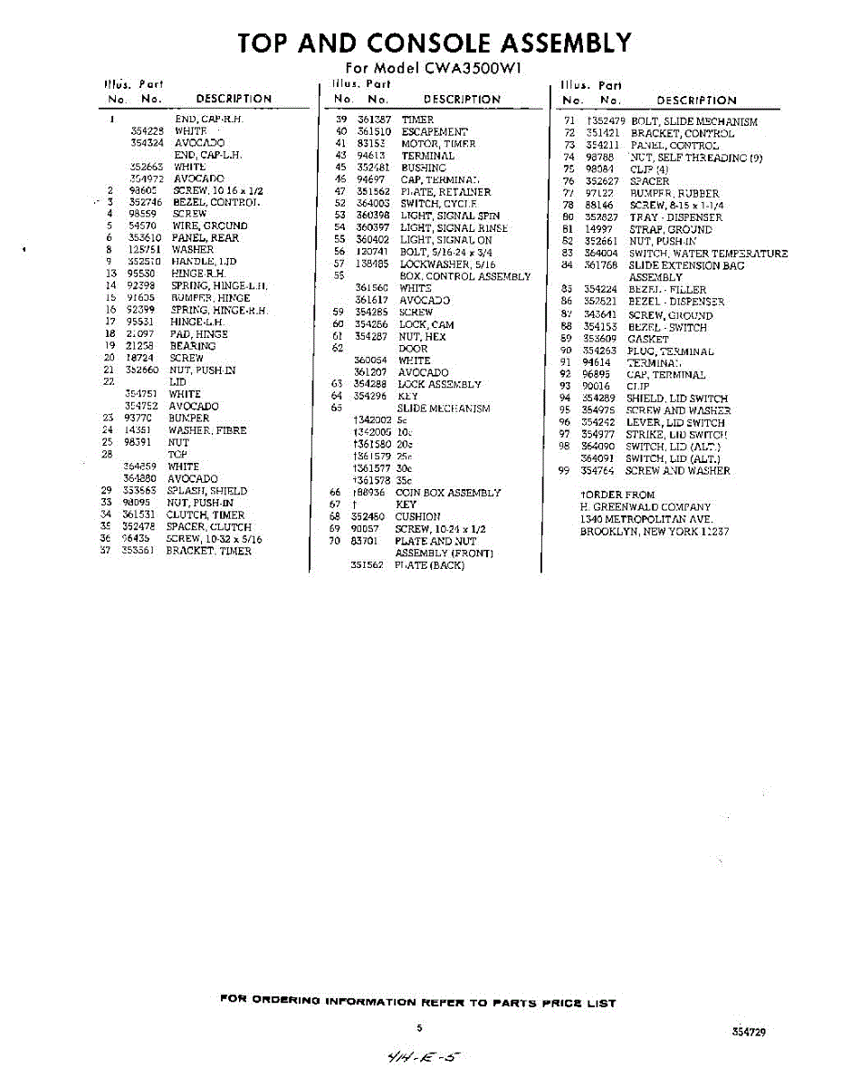 Parts for Whirlpool CWA3500W1: 05 - Section Parts