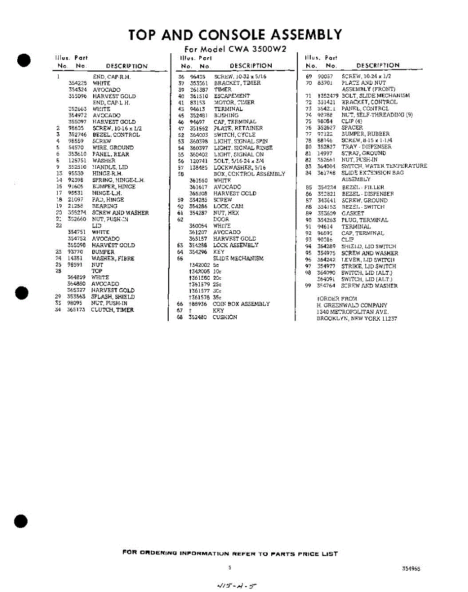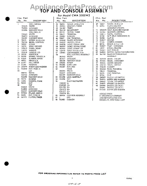 Parts for Whirlpool CWA3500W2: 05 - Section Parts