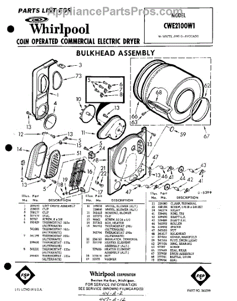 Parts for Whirlpool CWE2100W1: 01 - Section Parts