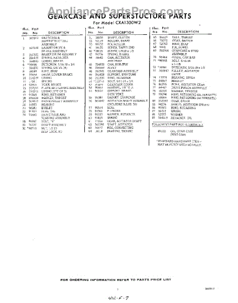 Parts for Whirlpool CXA1300W2: 07 - Section Parts