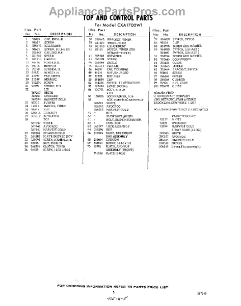 Parts for Whirlpool CXA1700W1: 05 - Section Parts