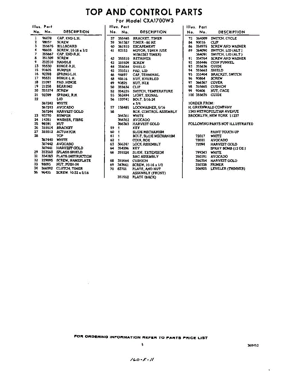 Parts for Whirlpool CXA1700W3: 05 - Section Parts