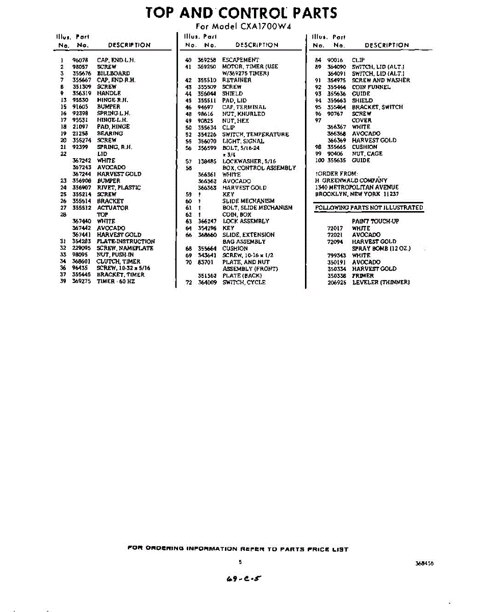 Parts for Whirlpool CXA1700W4: 05 - Section Parts