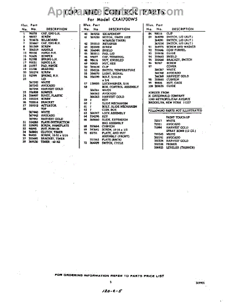 Parts for Whirlpool CXA1700W5: 05 - Section Parts